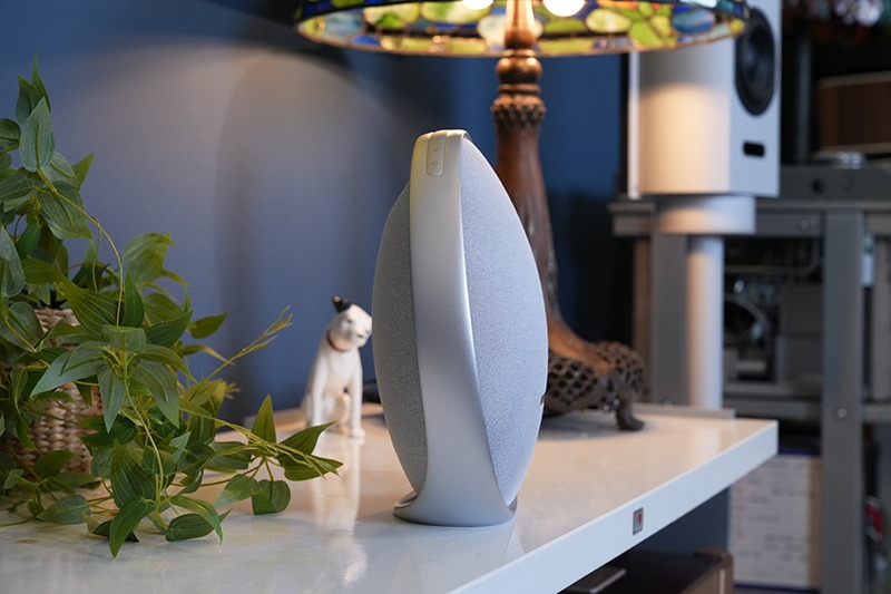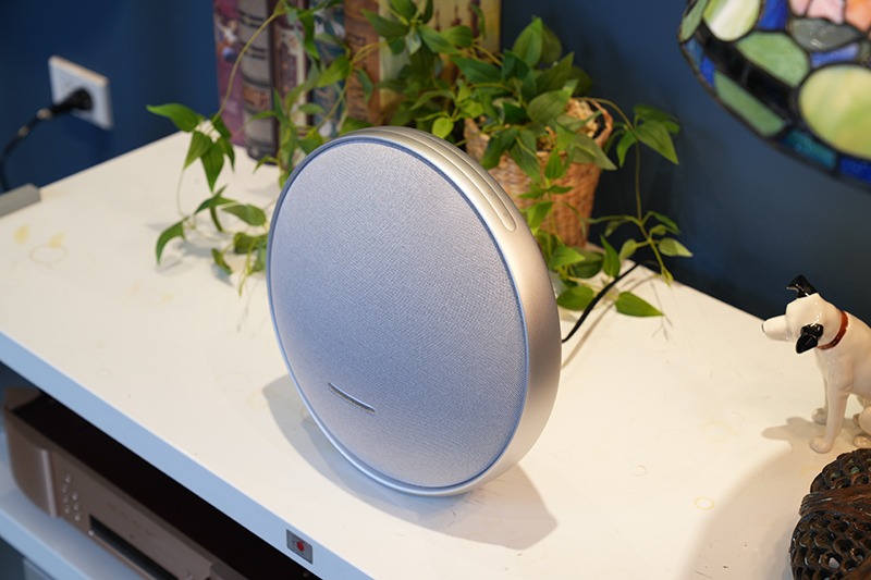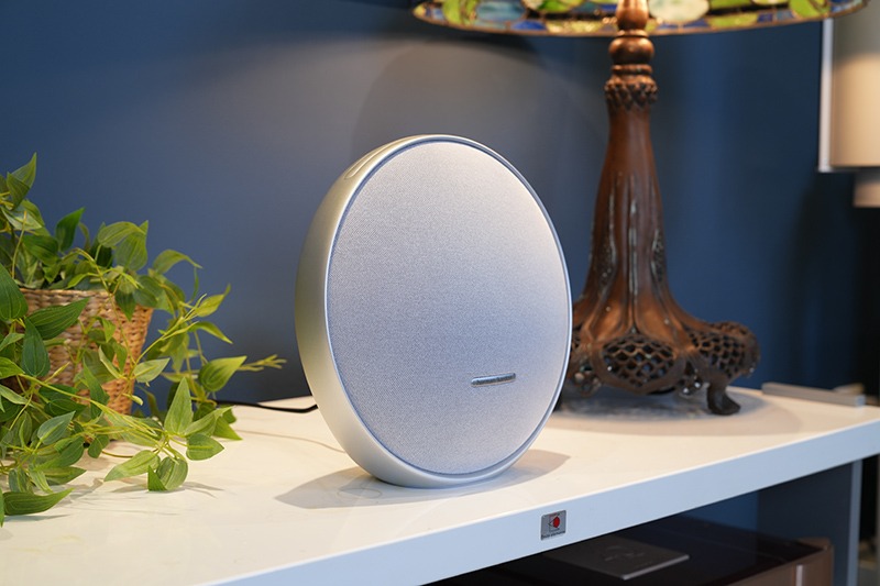Harman Kardon Onyx Studio 9 có thiết kế hình tròn độc đáo, trông hoàn hảo ở mọi nơi. Khung nhôm tích hợp đóng vai trò như một tay nắm và chân đế vững chắc, lớp vải mềm mại nhưng chắc chắn trông sắc nét và tạo cảm giác thoải mái, trong khi các nút silicon dễ dùng ở trên cùng giúp bạn điều chỉnh dễ dàng.