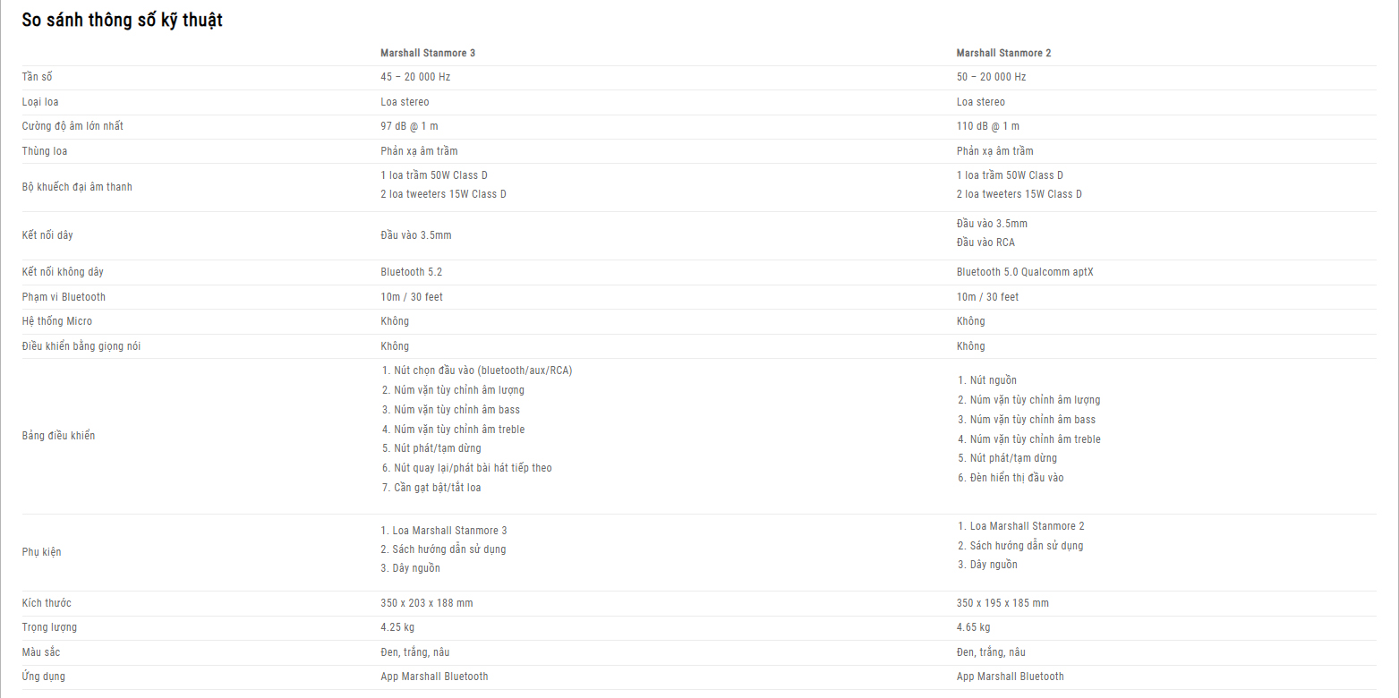 ------ Tham khảo thêm chi tiết hơn cho Marshall Stanmore 3 và Marshall Stanmore 2